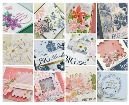 Twelve video tutorials, all featuring the Country Floral Lane Suite from the 2023 Stampin' Up Spring Mini Catalog. Each deisgned by a differnt SU Demo.