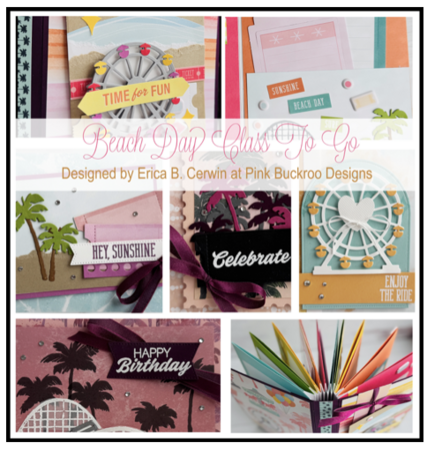 Prepare for those fun and sunny memories with the Boardwalk Fun Class! In this class, you will make a 20 page mini album and four cards, all featuring the Boardwalk Fun Bundle and the Beach Time Scrapbooking Workshop. Video link for the mini album is included on the second page.