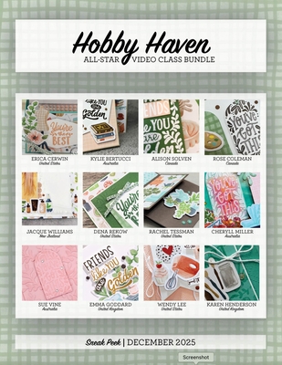 Twelve video tutorials all featuring the Hobby Haven Suite. Each is designed by a differnt globally recognized Demo.